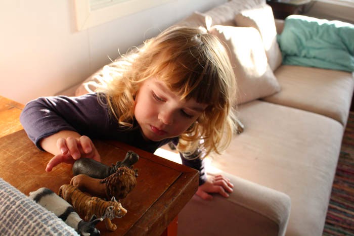 Ellery: playing with his 'animoos' (one of his made up / bent-out-of-shape words)